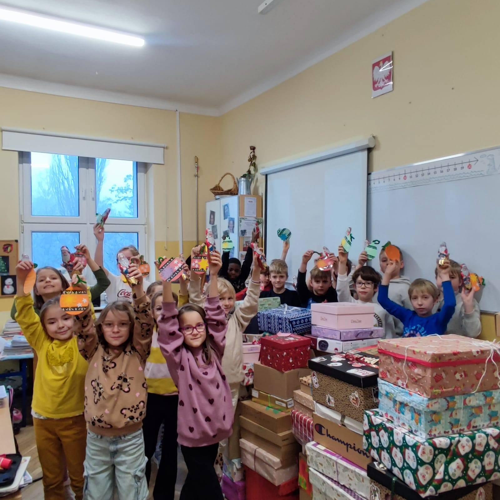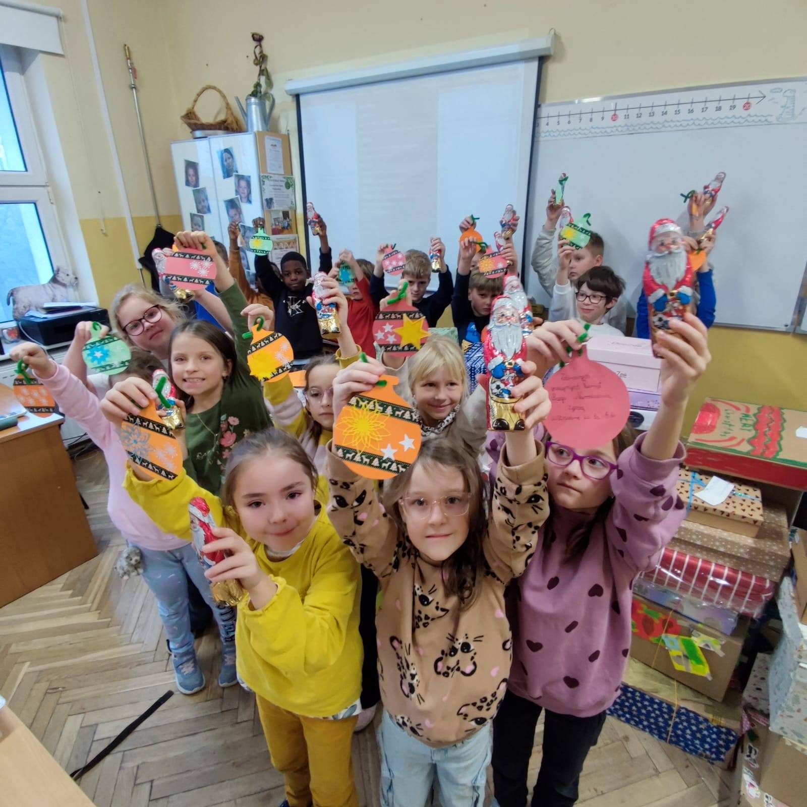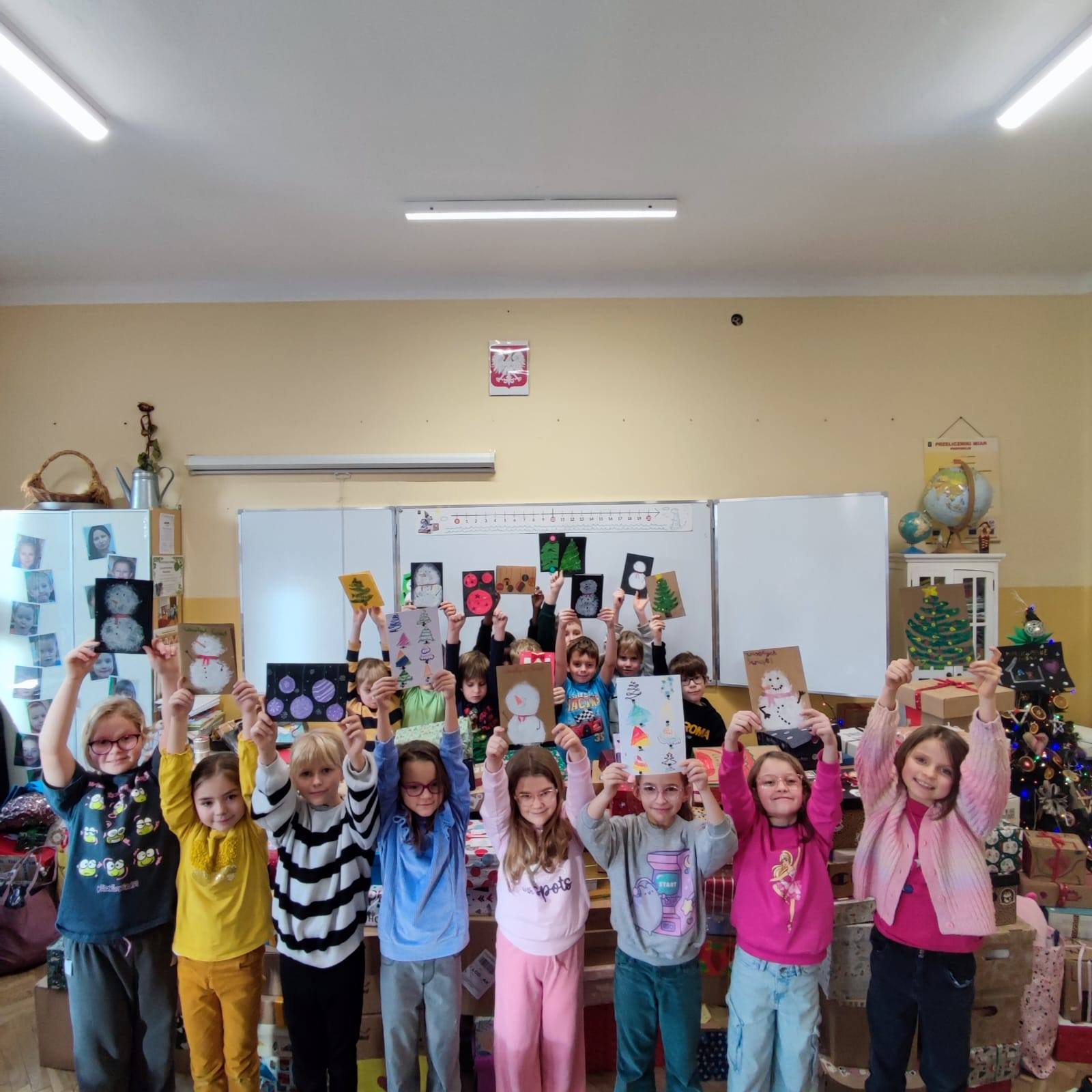 Szkolne Koło Wolontariatu wraz z klasami: IIb i IVb oraz Specjalny Ośrodek Szkolno-Wychowawczy nr 4 w Łodzi w ramach projektu "Edu-arte. Sztuka łączy, a nie dzieli" wzajemnie przygotowali "Bożonarodzeniowe karty dla Przyjaciela", które wszystkim Dzieciom sprawiły ogromną radość jeszcze przed Świętami