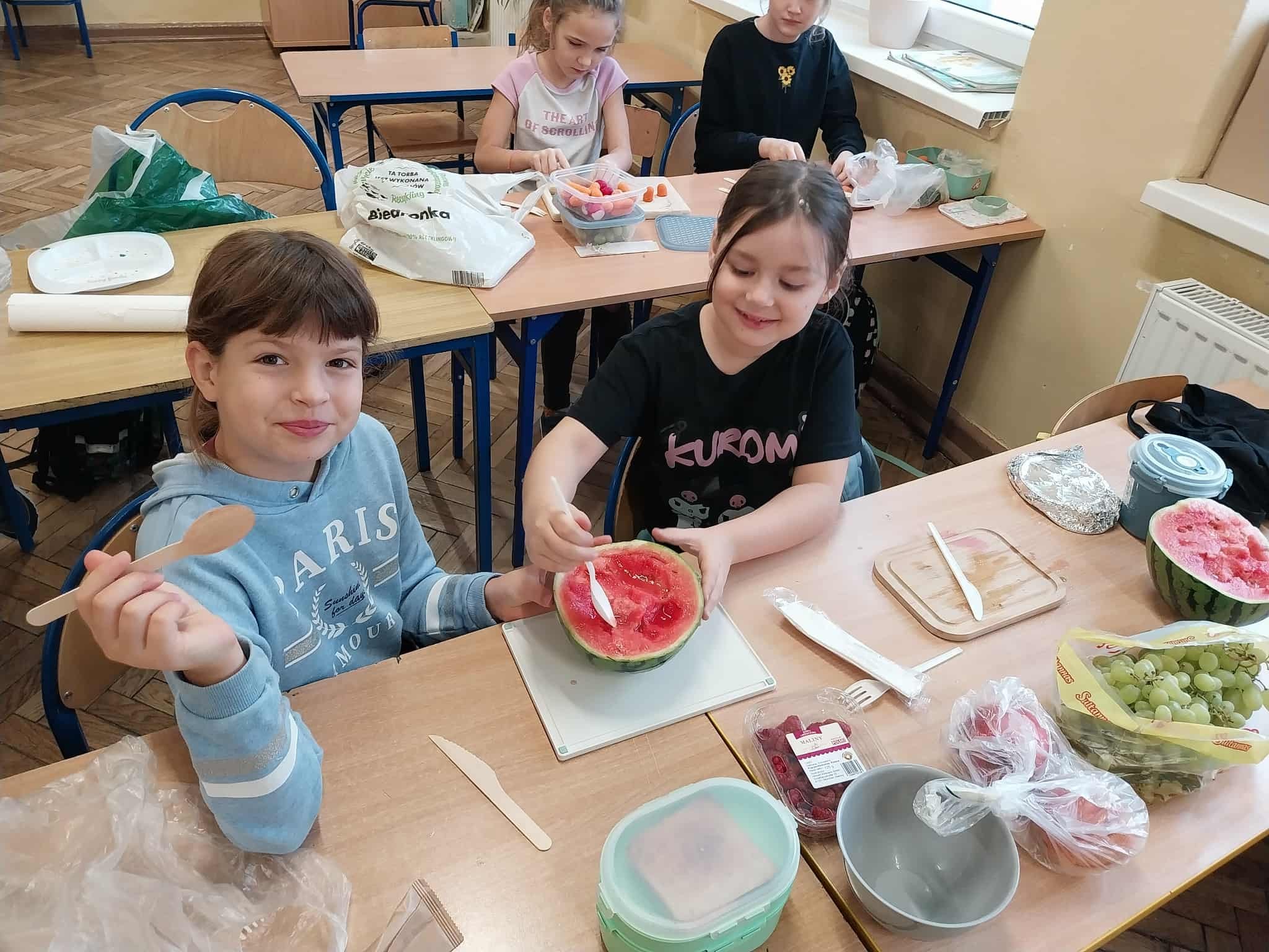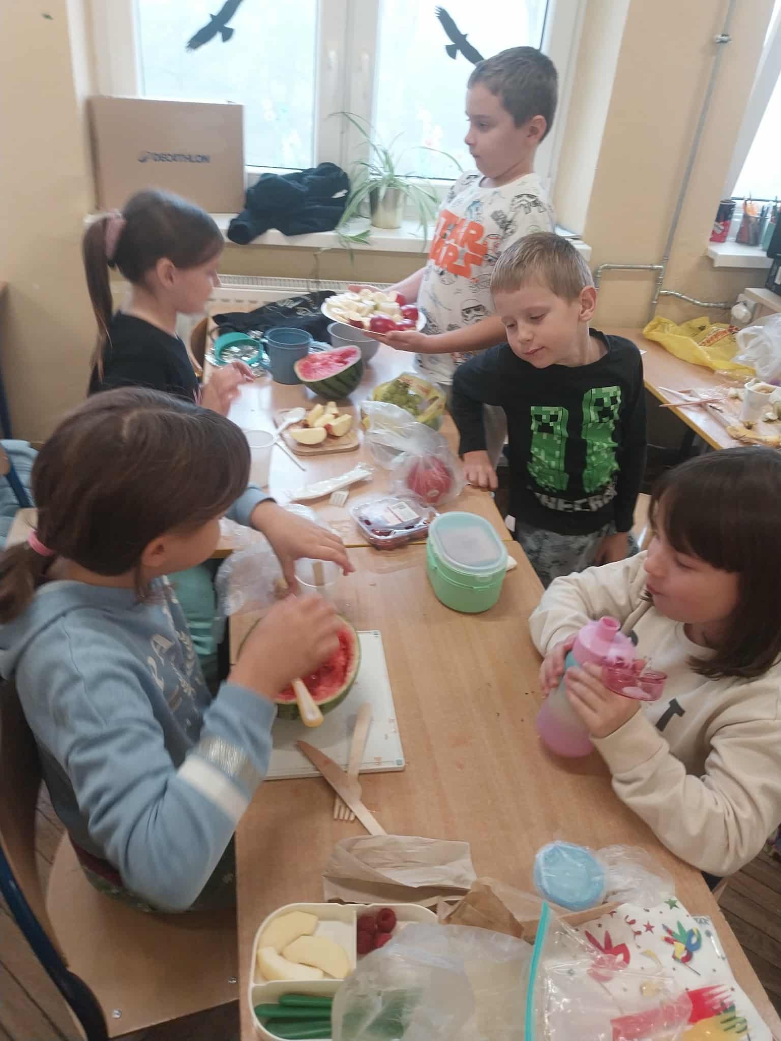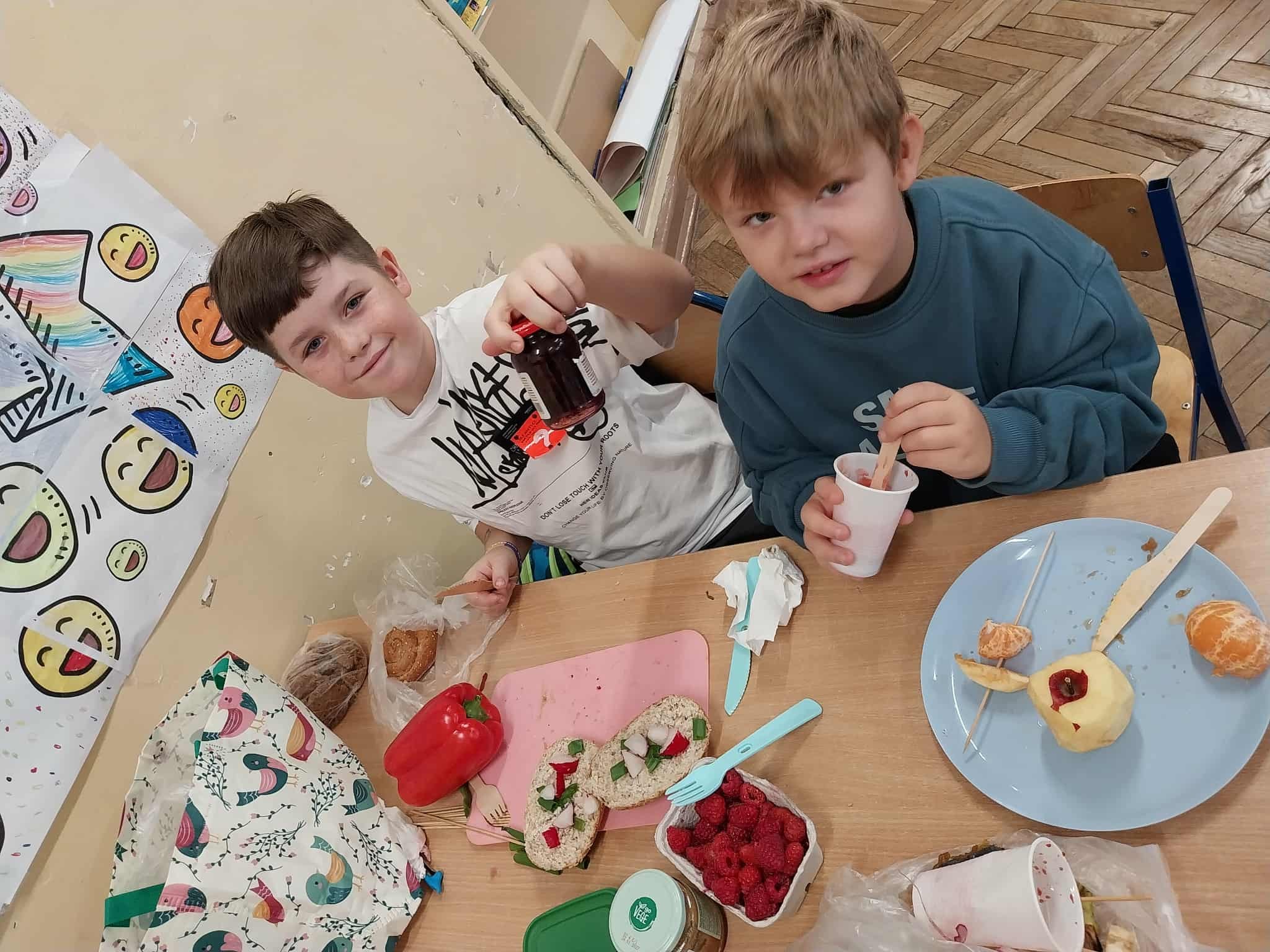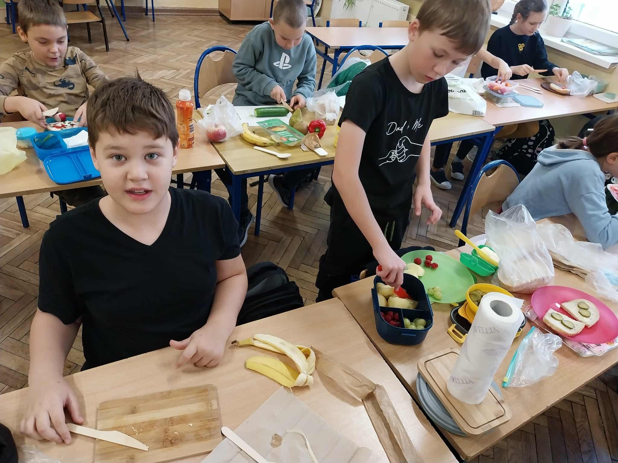 2b radość o poranku , przy kromkach chleba z własnoręcznie ubitym masłem, smakowanej maślance, w towarzystwie kolorowych warzyw..."Zdrowo i kolorowo "- klasa 2C przygotowuje zdrowe przekąski